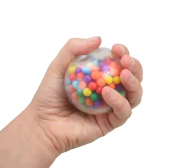 De kraaltjes in de bal maken dat deze heerlijk voelt als je er in knijpt. De transparante bal zit net niet helemaal vol met kralen. Daardoor is er wat speling om er echt in te knijpen en de kraaltjes heen en weer te bewegen.