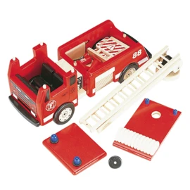 De ladder bestaat uit 2 delen zodat je hem uit kan schuiven, je kan hem naar boven draaien en opzij. De brandweerslang kan je aan beide kanten aan de wagen bevestigen en de spuit op de ladder.Verder heeft hij een echt laadruim dat vanaf 2 kanten te bereiken is.