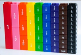 De blokjes passen op het bord op de afbeelding (blokjes basis). Daardoor kan je ze vast zetten en goed rechtop laten staan (dat kan ook los, maar dan vallen ze natuurlijk makkelijker om). Daardoor wordt het extra duidelijk.