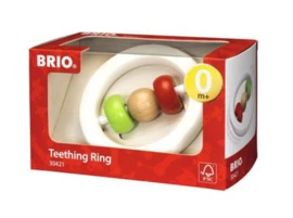 Ronde bijtring met houten kralen die er niet af kunnen.