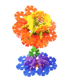 Doordat de inkepingen aan alle kanten van de schijfjes zitten kan je er letterlijk alle kanten mee op. En ze schuiven echt stevig in elkaar dus wat je bouwt stort ook niet zomaar in, maar wordt echt een bouwwerk.