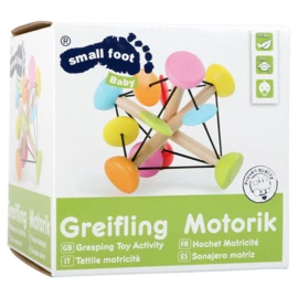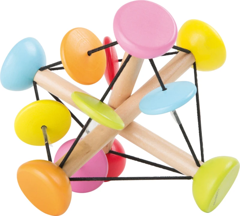 De elastigrijper is een slimme constructie van houten staafjes en elastiekjes met kralen eraan. Je kan hem induwen, uitrekken en hem alle kanten op bewegen.