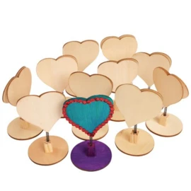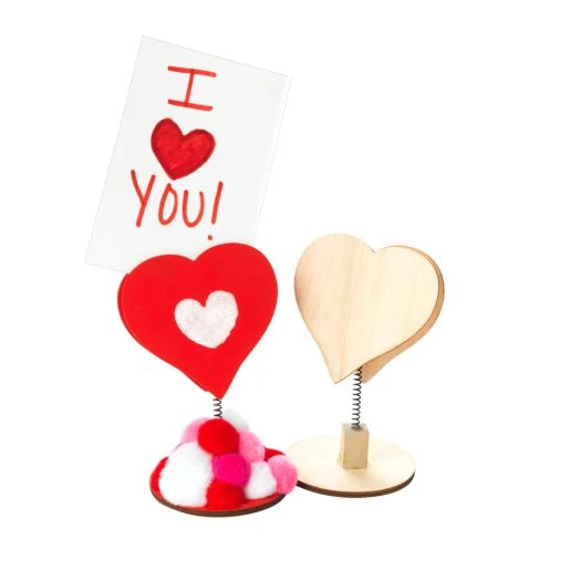 Houten memoclip gemaakt van 2 hartjes met een knijper ertussen. Op een voetje met een spiraalveer waardoor hij vrolijk wiebelt.