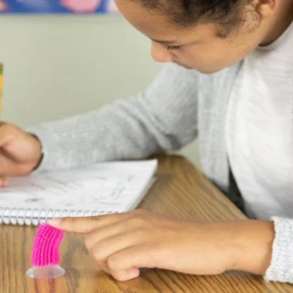 Doordat hij geen geluid maakt leidt hij verder niemand af. Hij is dus ook geschikt voor bijvoorbeeld een klaslokaal.