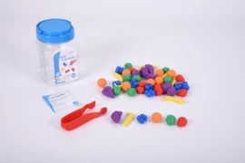 Elk in hun eigen kleur en van elk 8 stuks. En daarbij ook nog een jumbo pincet om ze op te pakken.