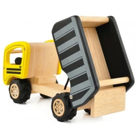 Kiepwagen met extra stevige rubber wielen. Noodzakelijk om alle transporten te verichten tussen de kraan en de gravers.