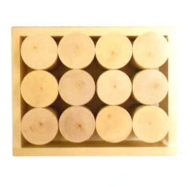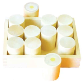 De houten staafjes zijn verdeeld in paren. Steeds zijn er 2 even zwaar. Deze 2 hebben dan ook dezelfde kleur stip.