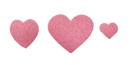 Prachtige knutsel hartjes gemaakt van glitterend, zelfklevend, roze EVA foam.