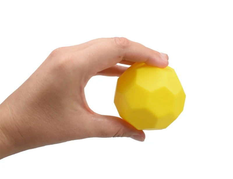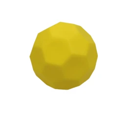 Kleine gele bal die niet helemaal rond is, maar een heleboel vlakken heeft.