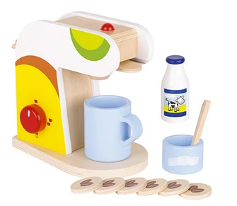 Zo leuk!!! Niet een “gewone” houten kofiiemachine, maar een echte Senseo! Inclusief padhouder, koffiepads en uitneembaar waterreservoir.