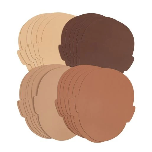 Grote gezichten van echt stevig karton. In 4 verschillende huidskleuren zodat er altijd wel eentje is die op jou lijkt.