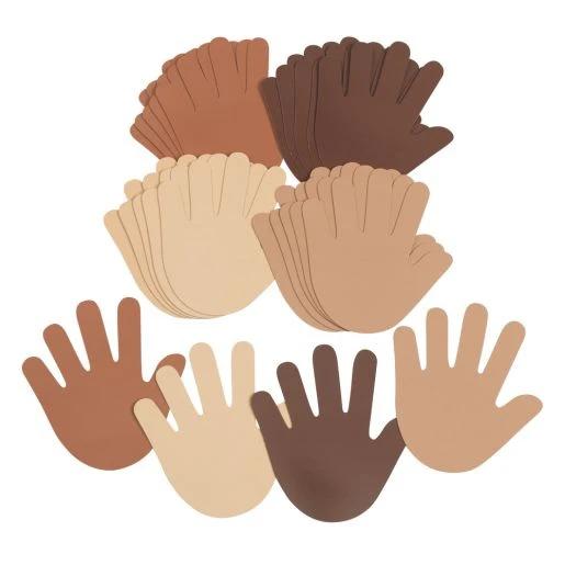 Grote, stevige handen van lekker dik karton. In 4 verschillende huidskleuren zodat er altijd eentje is die op jou lijkt.