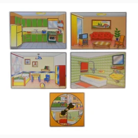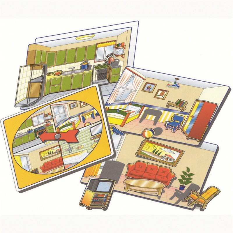 Het spel bestaat uit 4 kaarten met elk de opdruk van een kamer in huis (woonkamer, slaapkamer, keuken en badkamer), een draaischijf, en voor elke kamer een aantal meubelstukken die aan de achterkant voorzien zijn van klittenband.