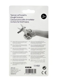 Een veilige schaar die helemaal van kunststof is; dus niet met geslepen, metalen blad. Hiermee knip je dus niet in je hand, of vinger… en ook niet in je haar. Maar wel in klei!