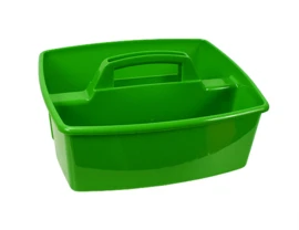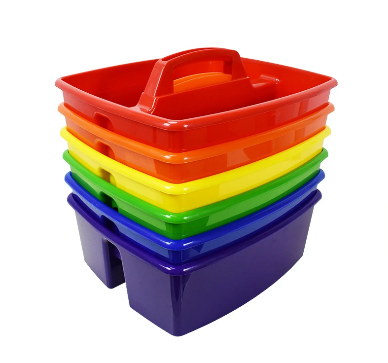 Een bak voor de verfspullen, een bak voor de kleispullen, een bak voor kralen e.d. , een bak voor de tekenspullen…