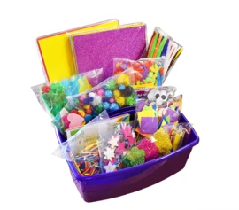 En dat is dan alleen nog maar de knutselafdeling. Je kan natuurlijk een bak maken voor rekenspelletjes e een bak voor taalspelletjes, een bak voor motoriekspelletjes en een bak voor gezelschapspelletjes…