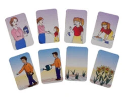 De categorieen zijn verdeeld in kleuren en er staat geen tekst op de kaarten, dus je hoeft niet te kunnen lezen.