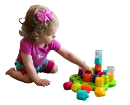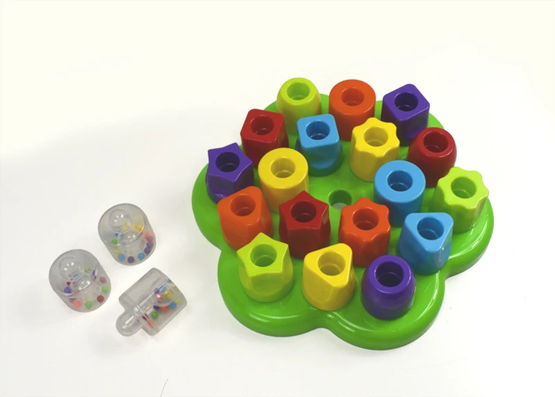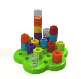 Op die leeftijd zijn kinderen vaak veel bezig met dingen erin en eruit. En stapelen. En dat is nou precies wat je met dit bord doet.