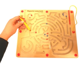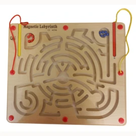 Motoriekbord voor 1 of 2 personen waarbij je met de magneetpen de gekleurde balletjes naar het midden van het doolhof moet brengen.