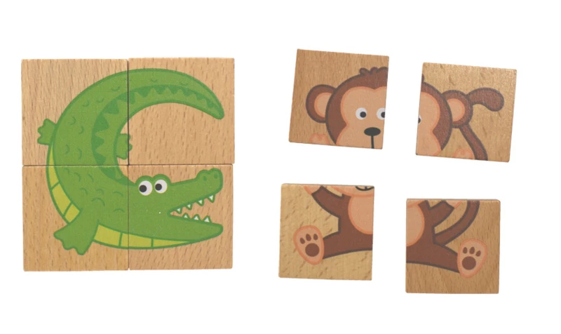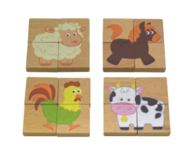 Set van 8 houten puzzeltjes die magnetisch zijn; superleuk voor bij het magnetisch wandbord.