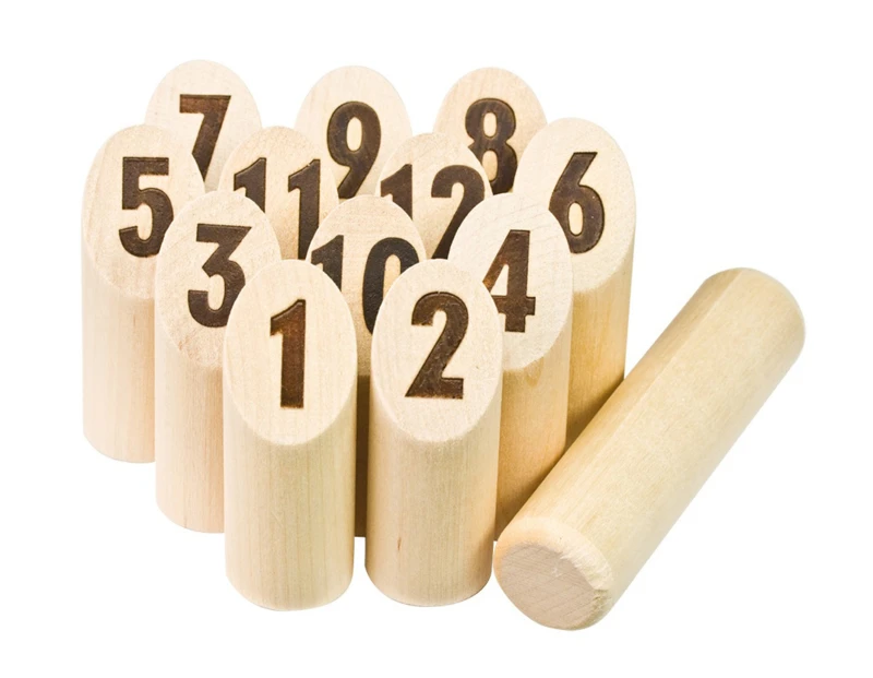 Houten spel voor buiten waarbij je zowel je motorische vaardigheden als je rekenvaardigheden oefent.