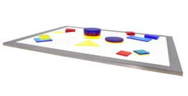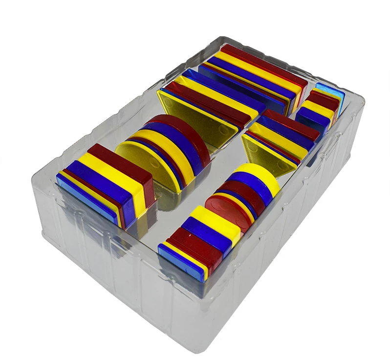 Set transparante mozaiekstenen in een voorgevormde kunststof bak waar alle stukken precies in passen.