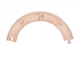 Set van 4 stukjes houten rails die samen een bocht van 180 graden vormen.