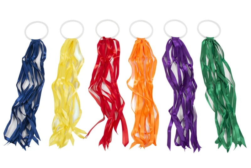 Met regenboog dansringen maak je de mooiste dansjes en kunsten. Je pakt ze beet bij de ring en zwiesrt de gekleurde stroken door de lucht, op muziek of gewoon zo. De slierten met ring zijn 30 cm lang en komen in 6 verschillende kleuren. Je kunt ze per stuk bestellen en dan worden ze assorti geleverd. Je kunt ook de voordeelset bestellen en dan krijg je alle 6 de kleuren en zijn ze nog maar 3,95 per stuk.