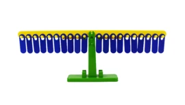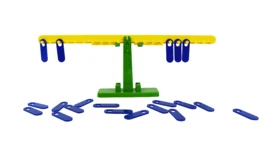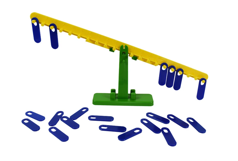 Een balans met aan beide kanten 10 haakjes met daarboven de getallen 1 tot en met 10.