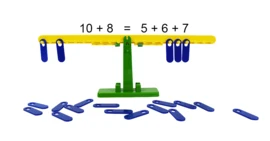 Als je aan beide kanten een gewichtje aan de 10 hangt is de balans natuurlijk in evenwicht. Maar als je aan de ene kant een gewichtje aan de 10 hangt en een de andere kant een gewichtje aan de 6 en een gewichtje aan de 4… dan is de balans dus ook in evenwicht.