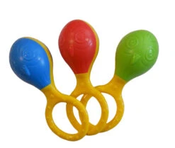 Kleine baby samba met in plaats van een gewoon handvat een stevige (bijt)ring om hem mee vast te houden.