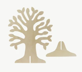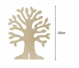 Je schuift de losse voet in de stam van de boom. Hierdoor maak je een kruis waar de boom zelfstandig op blijft staan. e boom is 25cm lang.