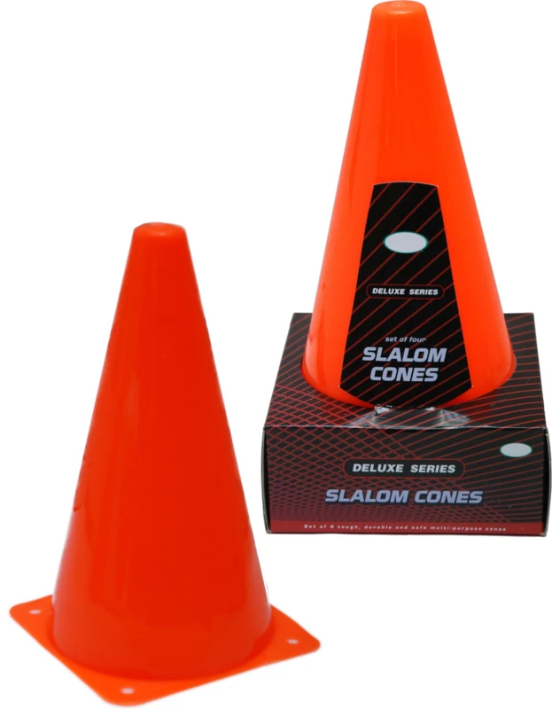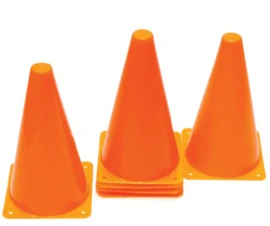 Set van 4 oranje pylonnen. Deze pilonnen zijn 23 cm hoog, dus goed zichtbaar.