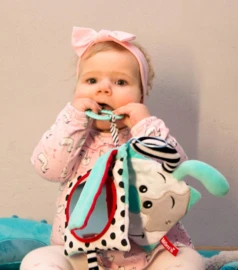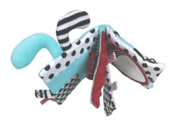De speeltjes zijn helemaal veilig vanaf 0 maanden en ook echt leuk voor hele kleine babies van een paar weken oud. Door de scherpe contrasten is het een van de eerste speeltjes die kindjes echt kunnen zien. En er zitten heel veel makkelijk te grijpen dingen aan die geschikt zijn voor die hele kleine handjes die nog maar heel weinig controle hebben.