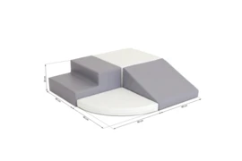 Deze Speelhoek is uitgevoerd in grijs en wit kunstleer en past dus goed in een hedendaags interieur. Je kunt hem neerleggen in een hoek, maar natuurlijk ook vrij in de ruimte of in een lengte-opstelling.