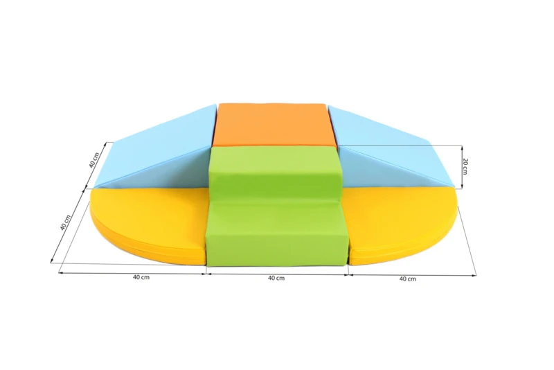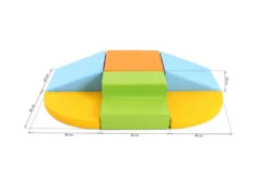 Dit 6-delige Speelplein is uitgevoerd in diverse vrolijke kleuren kunstleer. Je kunt hem neerleggen langs een wand, maar natuurlijk ook vrij in de ruimte.