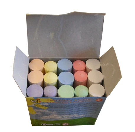 Een doosje met 15 staven stoepkrijt in verschillende kleuren.
