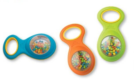 rachtige rammelaar en mooie frisse kleuren met een fijn en zacht geluid.