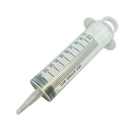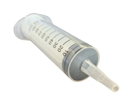 De spuit is maarliefst 20cm lang! Op het plaatje met de pen zie je de verhouding goed.