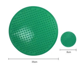 Omdat de schijven gemaat zijn van siliconen zijn ze helemaal zacht (ze kunnen dus niet door drukke kinderen als een soort frisbee gebruikt worden) en zijn ze ook geweldig anti-slip. Je kan er op spelen en springen zonder uit te glijden.