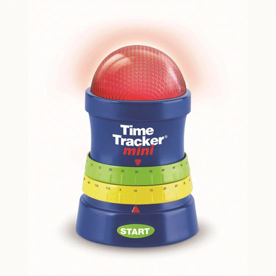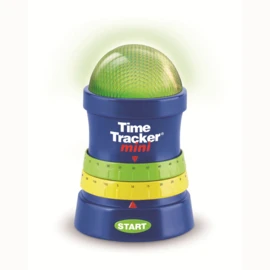 De time tracker is een soort wekker die niet alleen met geluid, maar ook met licht laat zien wanneer de tijd om is.