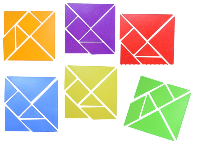 Deze tangramsetjes zijn verkrijgbaar in 6 verschillende kleuren.