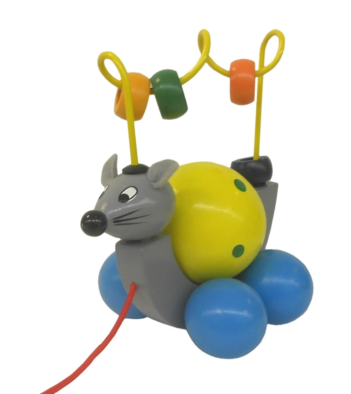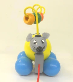 Als je deze muis vooruit trekt dan begint de bal op zn rug te draaien. En met de kraaltjes op het frame kan je lekker prutsen.