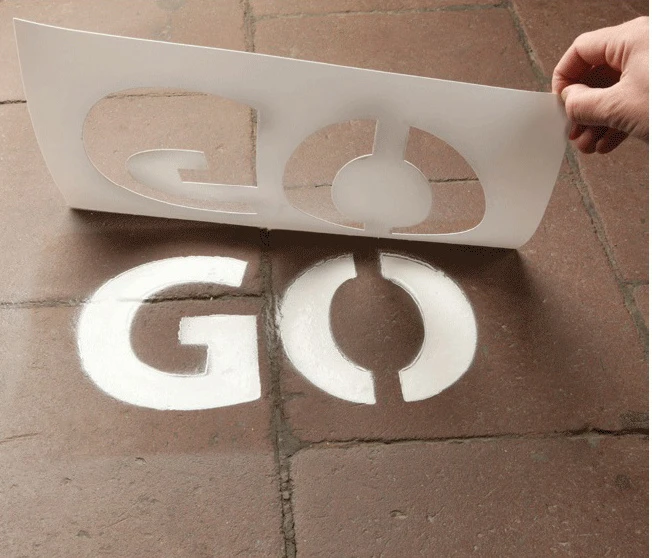 Ook zit er een flesje kalkspray bij. De kalkspray verkopen wij los, zodat je de sjablonen eindeloos kan blijven gebruiken.