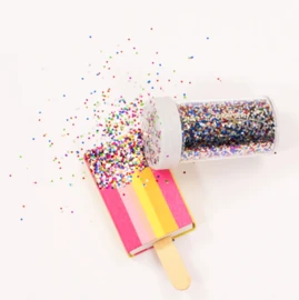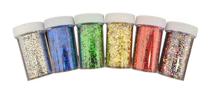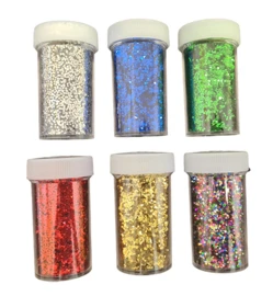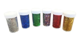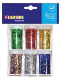 Set met 6 strooipotjes met daarin verschillende kleuren glitter.