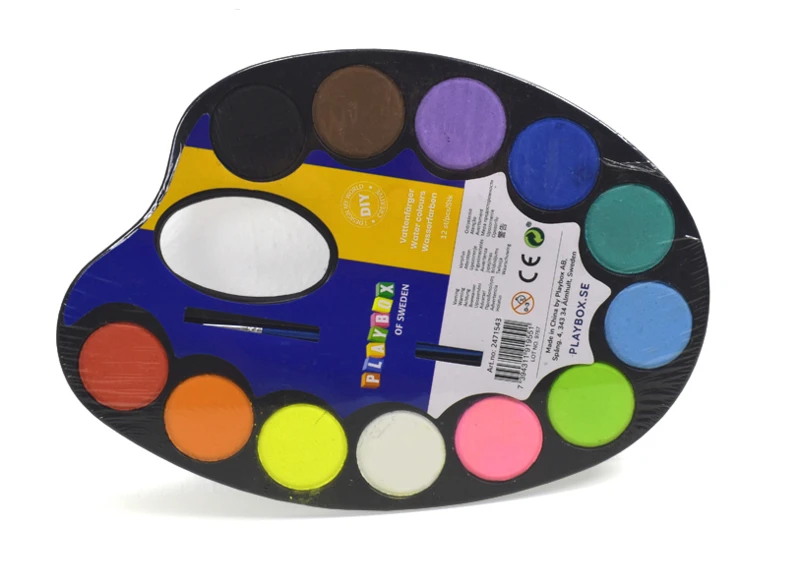 De set bestaat uit 12 kleuren en er zit ook een penseel bij.
