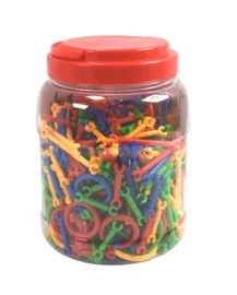 Deze set bestaat uit een vierkant weefraam waarmee je zowel rond als recht kan weven, een stompe naald, 2 spoelen en een gebruiksaanwijzing.