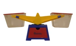 Een zeer nauwkeurige weegschaal met compensatie gewichten om hem exact in te kunnen stellen.