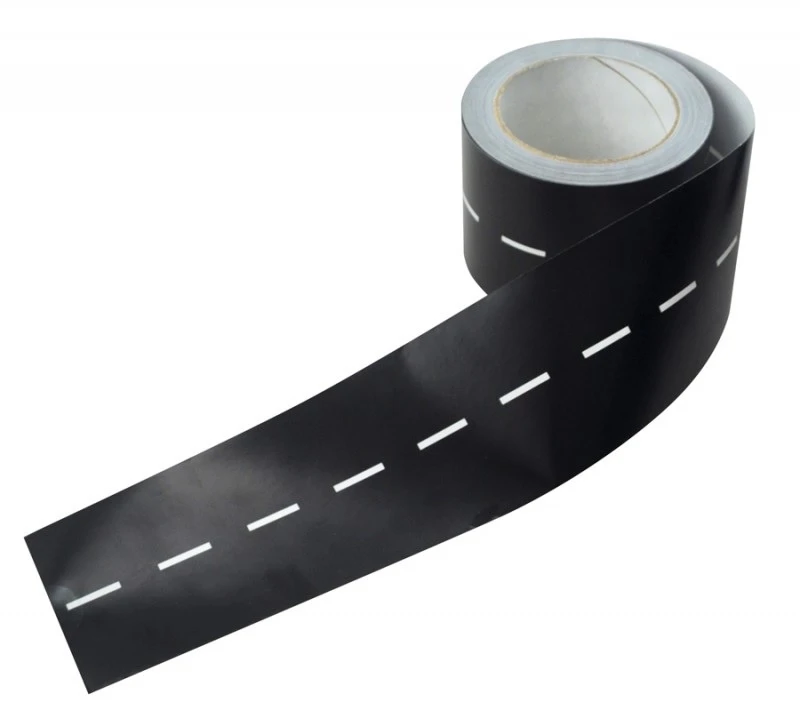 Superleuk om een wegenparcours te maken voor al je autootjes. Je knipt eenvoudig de gewenste lengte af en plakt dat op de vloer, op een tafel, of op de muur.