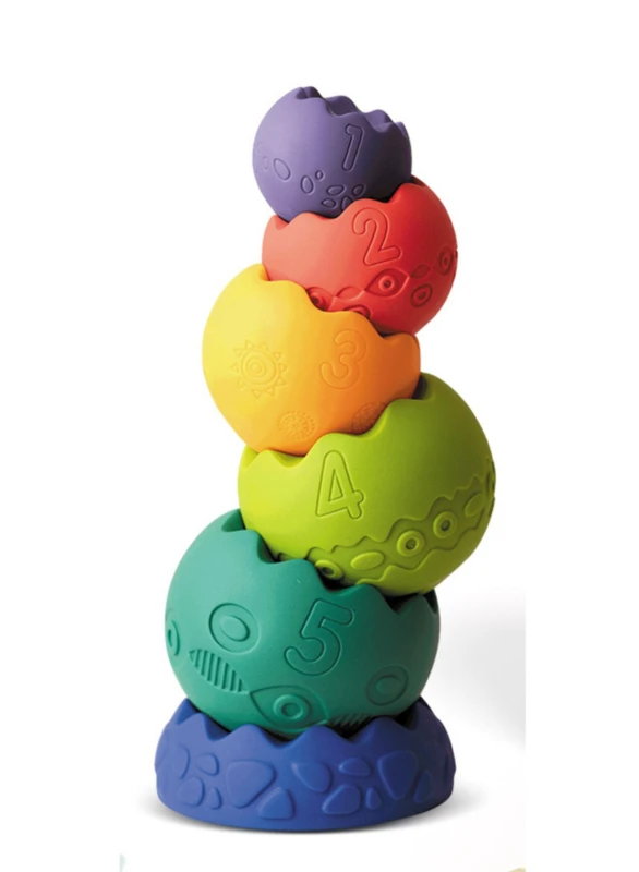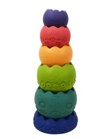 Een prachtige stapeltoren gemaakt van zacht kunststof.